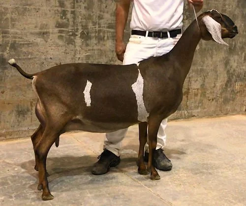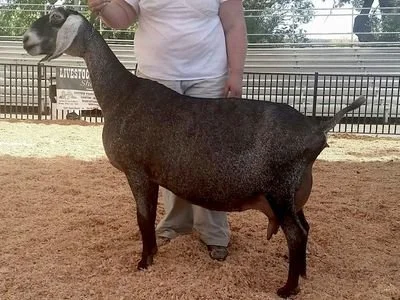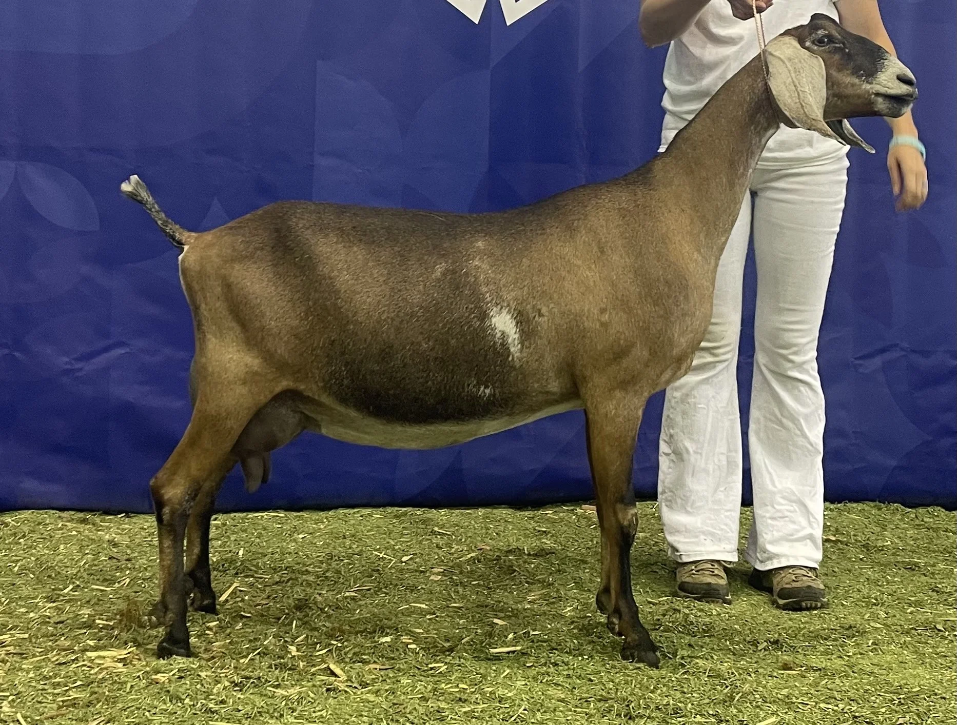 Edison’s sire, Blissberry Macapuno Sunrise, is son to SGCH Blissberry Rise & Shine 7*M. Rise & Shine appraised EEEE 92 as a four year old, and has an incredibly high (UH 48), wide (RUA 38) and well attached (MSL 30, FU 32) udder. Her lactations as a three and four year old doe were very impressive, showing us that her pretty mammary can also milk extremely well. Rise & Shine’s full sister, Rain or Shine, was the ADGA 2019 National Show 2nd place/1st Udder Three Year-Old, a member of Blissberry’s 2nd place Dairy Herd, a member of Blissberry’s 1st place Best Three Senior Does and was named BEST NUBIAN UDDER!! Edison’s sire’s sire is Blissberry Coconut Cooler who also comes from a long line of excellent udder genetics. It is our hope that Edison bring his sire’s udder genetics to all of Edison’s progeny in our herd. If we can achieve the width of Ethel, and the udders of Edison’s sire line, we will be going in an excellent direction.